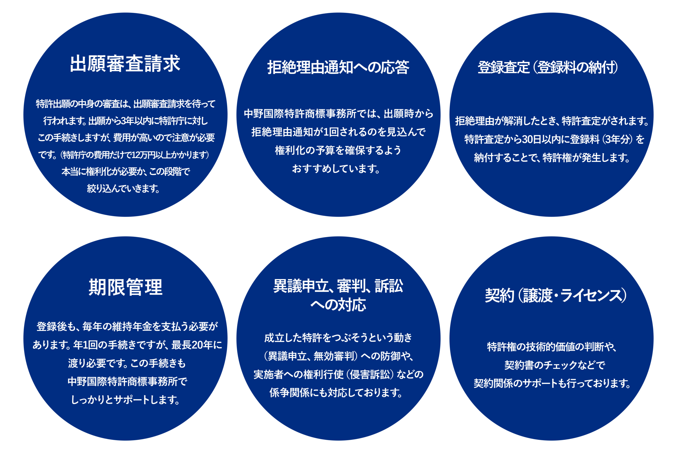 | 2. 差止請求権、損害賠償請求権により強力な保護が可能 他人が勝手に特許発明を実施した場合、裁判所を使ってやめさせることができます。ケースによっては製造設備の廃棄まで求められる場合もあります。裁判で解決する場合も、過失の推定規定(特103条)や具体的態様の明示義務(特104条の1)などにより裁判の負担が軽減されますし、お金で解決する場合には、相手の利益をそのまま損害額として得られる制度(特102条2項)があるなど、特許権者が手厚く保護されています。 | 2. 費用と手間がかかる 出願時に30万円前後、権利化までに70〜80万円程度、その後も維持費(年金)がかかります。また、出願時と中間の処理時に知財担当者様と発明者様に内容確認をするため、ある程度の時間を割いていただく必要があります。 |